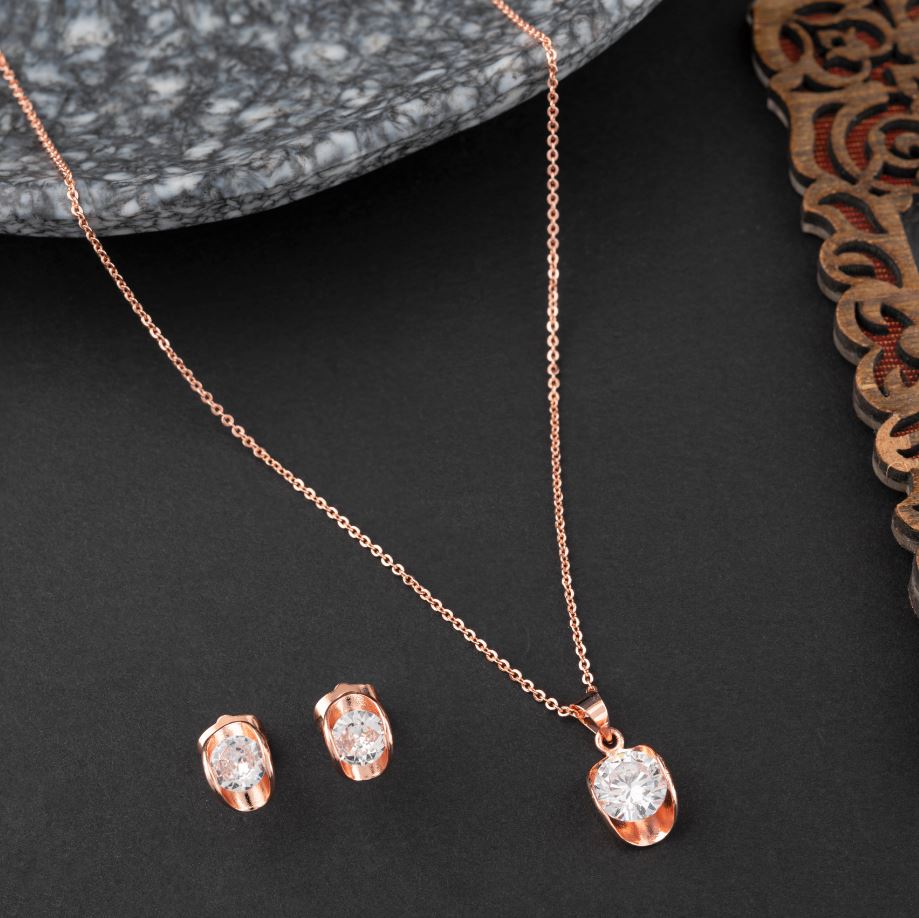 Collection:- Stylish Rosegold Plated Pendant Set Necklace
