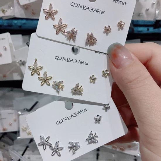 Korean Butterfly &Flower Cubic Zirconia Three Pair Earring