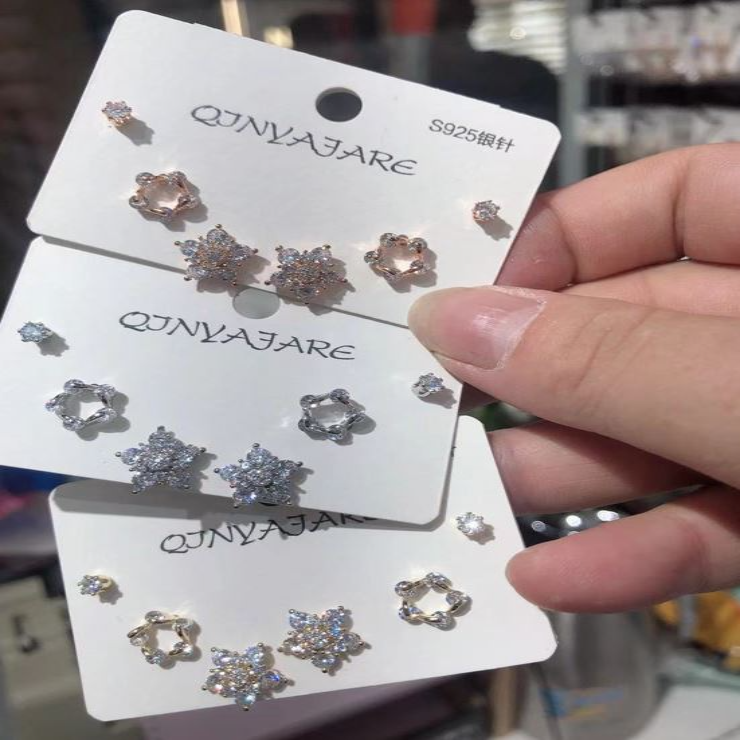 Korean Cubic Zirconia Flower Three Pair Earring