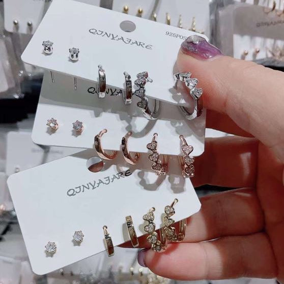 Korean Cubic Zirconia Three Pair Hoops Earring