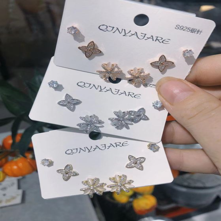 Korean Flower Cubic Zirconia Three Pair Earring