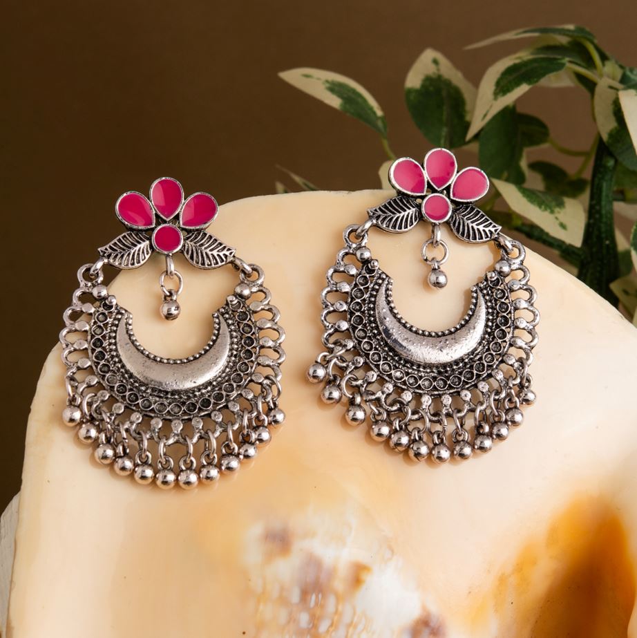 Collection:- Floral Enamel Artwork Chandbali Style With Beads Fashion Antique Oxidised Earring Collection.